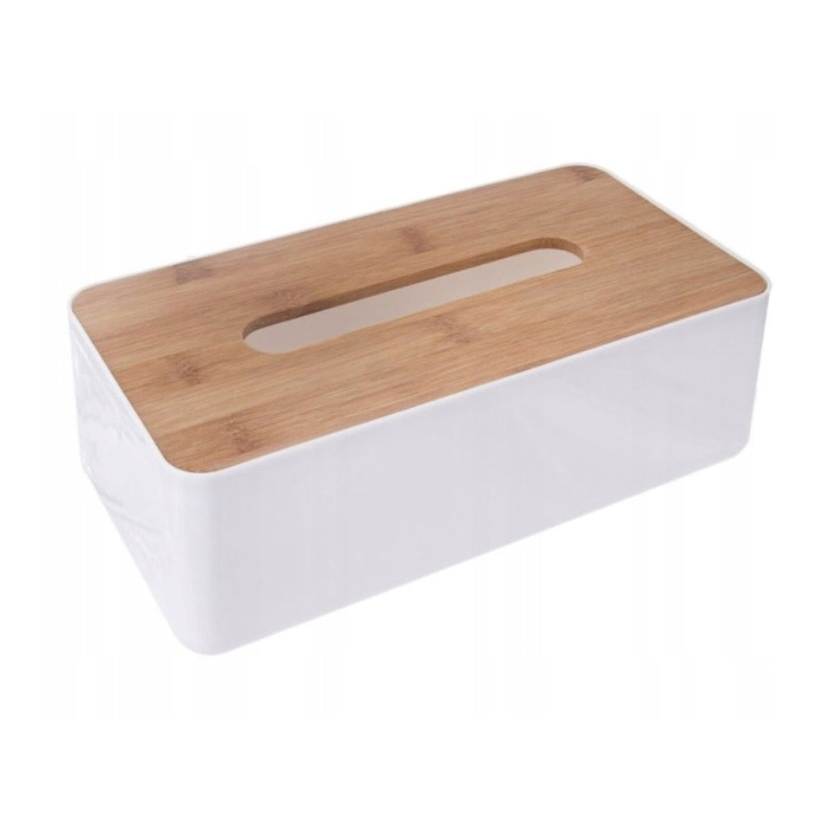 Pudełko na chusteczki z pokrywą bambusową, białe
