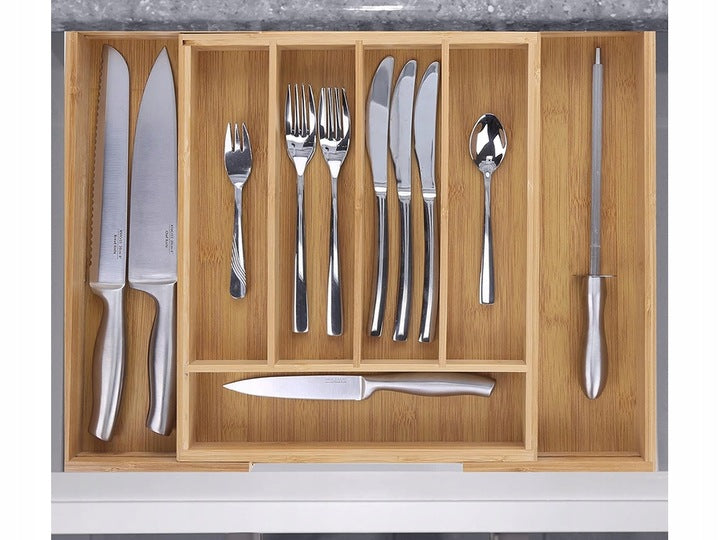 Wkład do szuflady bambusowy– regulowany organizer na sztućce